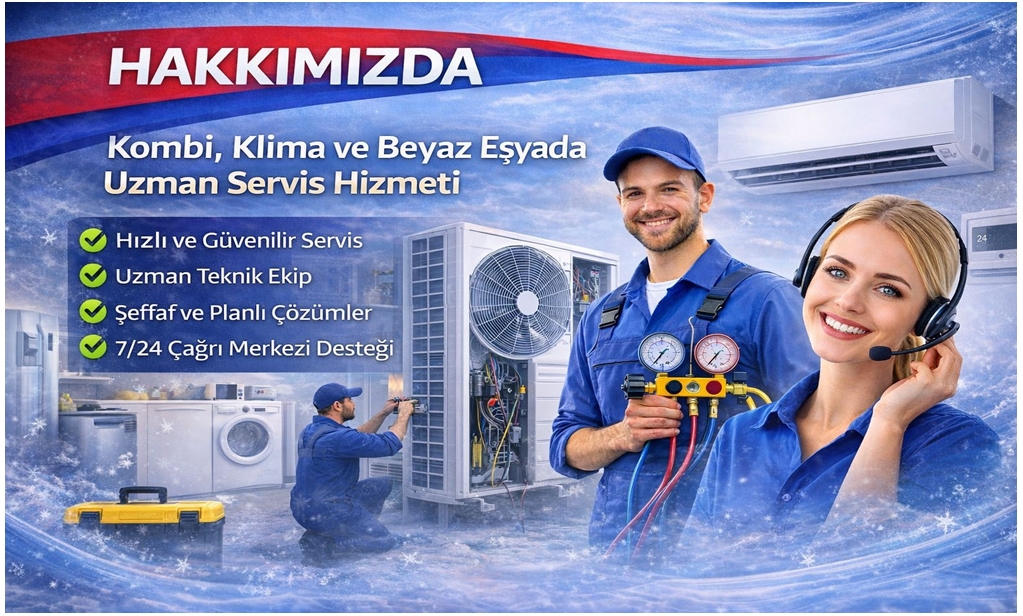 Firmamız, yılların verdiği deneyim ve güvenle klima, kombi ve beyaz eşya servis hizmetlerinde profesyonel çözümler sunmaktadır. Müşteri memnuniyetini her zaman ön planda tutarak; arıza tespiti, periyodik bakım ve montaj işlemlerinde hızlı, güvenilir ve garantili hizmet sağlıyoruz. Her marka ve model cihaz için uzman teknisyenlerimizle en uygun çözümü sunmayı amaçlıyoruz.