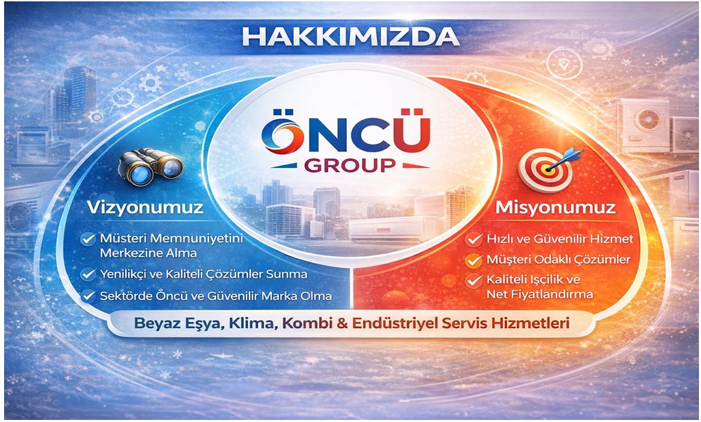 Servis hizmetleri alanında güvenilirlik, kalite ve sürdürülebilirliği bir araya getirerek sektörde örnek gösterilen bir marka olmak temel vizyonumuzdur. Kombi, klima ve beyaz eşya servis hizmetlerinde gelişen teknolojiyi yakından takip eden, yenilikçi çözümler sunan ve müşteri beklentilerinin ötesine geçen bir hizmet anlayışını benimseriz. Amacımız, yalnızca bugünün ihtiyaçlarını karşılamak değil; uzun vadede müşterilerimizin yaşam alanlarında konforu, güvenliği ve verimliliği kalıcı hale getirmektir.